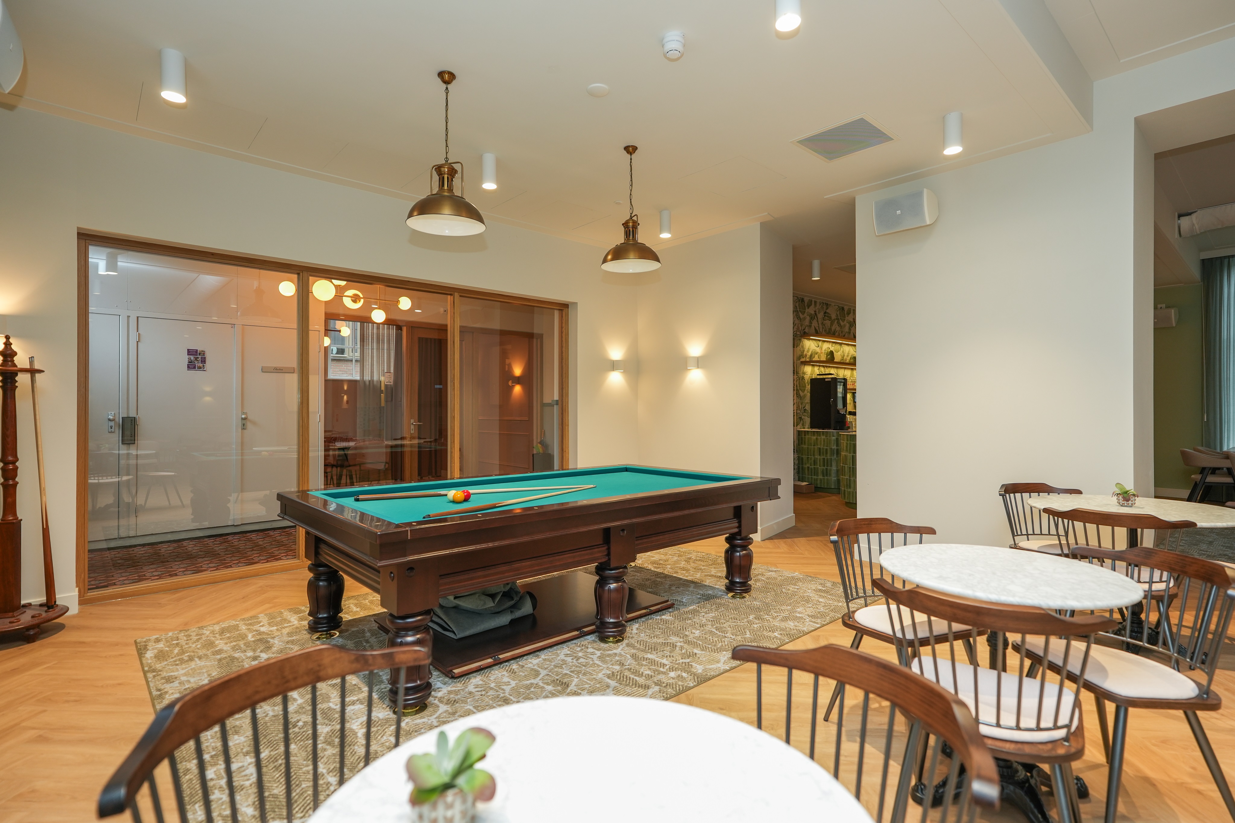 - De ontmoetingsruimte is openbaar. Als het wijkcentrum open is, is de ontmoetingsruimte altijd toegankelijk voor bezoekers